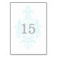 Simple avec élégance chic décrit cette subtile carte Mariage damassé Table avec un arrière - plan léger turquoise damassé fleuri. Cette carte de table élégante est parfaite pour un mariage moderne et peut être facilement customisé avec un ou des numéros de table ou vos détails de mariage. Pour plus d'options de personnalisation, cliquez sur le bouton Customiser.