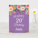 20e Anniversaire Floral Flowers Purple Card avec nom et âge personnalisés. Pour plus de personnalisation, cliquez sur le bouton "Customiser" et utilisez notre outil de conception pour modifier ce modèle.