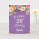 26e Anniversaire Floral Flowers Purple Card avec nom et âge personnalisés. Pour plus de personnalisation, cliquez sur le bouton "Customiser" et utilisez notre outil de conception pour modifier ce modèle.
