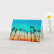 Ces cartes de voeux colorées présentent un tableau de silhouettes de palmiers contre un coucher de soleil arc-en-ciel.