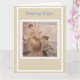 Une carte de vœux "À penser à vous" élégante et délicate, imprimable, présentant une œuvre d'art classique aux tons doux de deux femmes partageant un moment de réflexion calme. La palette pastel atténuée et la composition sereine créent un design intemporel et apaisant qui semble sincère sans être lourd.