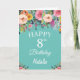 Carte Turquoise Aquarelle Florale 8e Anniversaire avec nom et âge personnalisés. Pour plus de personnalisation, cliquez sur le bouton "Customiser" et utilisez notre outil de conception pour modifier ce modèle.