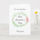 Une aquarelle de laurier et de fleurs roses jolie 1ère fête des grands-mères pour la fête des mères, que vous pourrez facilement personnaliser sur le devant avec son nom. Le message à l'intérieur de cette jolie carte de 1ère fête des grands-mères contient un message sincère, que vous pouvez également personnaliser si vous le souhaitez. Le dos comporte la même aquarelle de laurier avec des fleurs roses avec un espace pour que vous puissiez mettre le nom du petit-enfant et "grand-mère" ou ce que vous voulez. Un souvenir unique de fête des mères qui est personnalisé et sûr d'être chéri.