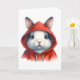 Carte Aquarelle Lapin Blanc en Capuche Rouge