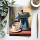 Carte aquarelle machine à café antique latte