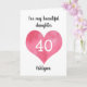 Une carte minimaliste de 40ème anniversaire avec un coeur aquarelle que vous pouvez facilement personnaliser avec son âge et son nom sur le devant de cette carte d'anniversaire. Vous pourrez également modifier le message de la carte intérieure si vous le souhaitez. Cette carte personnalisée de 40ème anniversaire ferait un merveilleux gardien de carte pour fille, fille en droit, femme, etc.