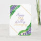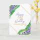 Une combinaison sophistiquée de fleurs de lavande aquarelle, de feuilles verts luxuriants et de texte doré chatoyant crée un hommage intemporel pour un 50e anniversaire de mariage.