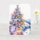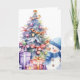 Carte Aquarelle Snowman avec Écart Bleu & Arbre de Noël