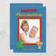 Cette carte de vœux à plat Chrismukkah a un certain charme nostalgique. Votre photo est le centre de l'attention dans un cadre doré et rouge. Les mots "Joyeux Chrismukkah" apparaissent en haut avec un arbre et une menorah en bas. Le design peut être personnalisé avec l'année et le nom de votre famille. Copyright Henis House of Paper