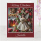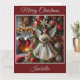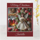 Un bel ange orne un élégant sapin de Noël rouge, argenté et doré devant une cheminée chaleureuse dans cette carte de Noël enchanteresse. Ajoutez votre propre texte personnalisé.