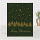 Personnalisez, Arbre de Noël doré, Épinette de Noël, Lune, étoiles sur arrière - plan vert foncé. Sachez que vous avez une photo !