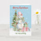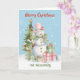 Cette dame a du style bien sûr — la carte Arbre de Noël de Snowman (Dame des neiges) d'aquarelle - enverra votre message pour la saison des fêtes avec joie et bon humour. Habillé pour la saison et entouré de cadeaux et de bonne humeur. Personnalisé avec votre nom devant; message à l'intérieur et un Joyeux Nouvel An à l'arrière. Si vous avez des questions de design, envoyez un conversation et nous serons ravis de le faire. Aquarelle Stylish Snowman Lady, jolie neige d'arbre de noël sifflant, message personnalisé nom de famille, bonne nouvelle année, amusement féminin girly, rétro charme