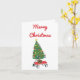 Noël en rouleau... Joli design artistique de Noël. Chariot rouge prenant un sapin de Noël pour une balade. Design idéal pour les cadeaux de Noël et les fêtes. Parfait pour les décorations de Noël, vêtements et cadeaux.