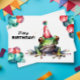 Cette carte d'anniversaire présente une illustration unique et originale d'une grenouille d'aquarelle portant un casquette festif et remplie de ballons d'anniversaire colorés. L'illustration colorée de la carte d'anniversaire de la grenouille apporte un élément vivant et attrayant à la célébration. Idéal pour les amateurs de zoo ou ceux qui aiment la présence animée de grenouilles arborescentes, cette carte de voeux est un moyen délicieux et mémorable d'étendre vos souhaits d'anniversaire les plus chauds, ajoutant une touche de charme de la nature à la célébration.