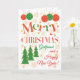 Une carte de Noël colorée et textuelle pour une amie, avec des lettres remplies de points Polka et des flocons de neige, des arbres de Noël, des étoiles et des ornements de Noël en rouge vif, vert et doré. (NB, les étoiles et les contours de l'effet or seront vus et ne seront pas imprimés à l'encre métallique.)