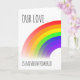 Une carte de vœux sur le thème LGBT pour celui que vous aimez. Caractéristiques d'un arc-en-ciel audacieux et les mots "Notre amour est alimenté par l'arc-en-ciel". L'intérieur est vierge pour votre propre message