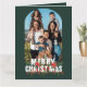 Élégant Arc vert Script Photo Noël pour votre famille, Personnalisé Élégant Gras Floral Joyeux Arc de Noël Photo de saison Carte de voeux Design Unique, classique, tendance et décoratif Carte de vacances, avec joyeux texte de Noël dans une image élégante entourée d'aquarelle eucalyptus, feuilles verts, baies rouges et branches de pin. customisez ou personnalisez avec une photo et nom de famille (ou des noms individuels) votre choix sur un élégant arrière - plan blanc bordeaux. Et un message de bienvenue de saison personnalisable à l'intérieur de la carte. Cliquez sur le bouton "Customiser" pour modifier les polices, les couleurs du produit unique.