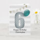 Une carte de 6e anniversaire heureuse en argent et bleu pour les garçons, que vous pouvez personnaliser le front avec son nom. La façade de cette carte de garçon moderne de 6e anniversaire comporte le numéro six dans un décor rayé bleu avec un ballon bleu prêt à flotter. Le arrière - plan est un blanc et gris doux, avec une bannière de jonction argentée en haut. Le message intérieur peut être facilement personnalisé si vous le souhaitez. Un grand gardien de 6 ans pour lui.