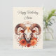 Carte d'anniversaire pour Aries avec une image numériquement créée. Le message d'accueil peut être modifié, y compris le remplacement d'un nom par le signe du zodiaque. L'IA a aidé graphisme acheté à des fins commerciales. Oeuvre : CosmicMeta