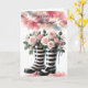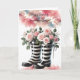 Une belle carte d'anniversaire avec une paire de bottes rayées blanches et noires remplies de roses roses douces, des swooshes de couleur ombre accentuent l'arrière - plan. Customisez comme vous le souhaitez.