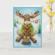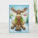 Carte Art aquarelle de l'élan fantaisiste de Noël en hiv
