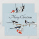Carte Art de Noël à l'aquarelle avec houx, oiseau pie et