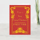 Belle carte de Noël de style Art Déco / Art nouveau rouge et or avec calligraphie. Lettres dorées et bordure ornée sur fond rouge. Tout le texte à l'avant et à l'intérieur peut être facilement modifié pour un message de votre choix en utilisant le texte du modèle. Personnalisez cette carte de vœux élégante pour Noël.