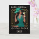 Envoyez des voeux d'anniversaire dans les années 20 avec ce design de style Art déco avec un dessin d'une femme dans une robe de soirée verte en dégustant un cocktail et les mots Joyeux Anniversaire Cocktail Reine. Personnalisez facilement le nom de votre destinataire en bas et votre message à l’intérieur. L'arrière - plan noir peut être changé en une autre couleur si vous le souhaitez via l'option Cliquez pour Customiser plus.
