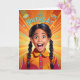 Il s'agit d'une carte d'anniversaire SUPER pour un enfant d'âge primaire ou secondaire dans des teintes jaunes, orange et bleues vibrantes; et remplie d'excitation.