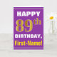 Ce design de carte anniversaire-orienté simple de salutation comporte un souhait chaud d'anniversaire comme le "JOYEUX quatre-vingt-dix-neuvième ANNIVERSAIRE, prénom !" sur l'avant, en caractères gras sur un pourpre a coloré l'arrière - plan. Le nombre d'anniversaire a un faux/imitation or-comme l'aspect de coloration. Le nom sur l'avant peut être personnalisé. Les caractéristiques intérieures un message personnalisable d'anniversaire. Une carte de voeux comme ceci pourrait être une manière d'amusement de fournir des souhaits d'anniversaire à quelqu'un qui célèbre leur neuvième anniversaire quatre-vingts. [~Z0000277]
