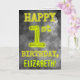 La façade de cette carte de voeux à l'aspect mystérieux et personnalisée, présente le message "HAPPY 1st BIRTHDAY" avec des personnages ayant une apparence luisante, sur un motif arrière - plan gris éffrayant d'inspiration brouillard nuageux. Le devant contient également un nom de destinataire modifiable. L'intérieur est doté d'un message d'anniversaire personnalisé. Une carte de voeux d'anniversaire customisée comme celle-ci peut être utilisée pour envoyer un message de voeux d'anniversaire à quelqu'un célébrant son 1er anniversaire. [~Z0000364]