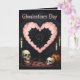 Un grand cœur orné monté sur un piédestal comme s'il était exposé. Niché dans ce cœur se trouve un amas dense de roses noires veloutées, leurs pétales en couches formant un deuxième cœur plus sombre au cœur de l'image. Le contraste entre le fond rose doux et les fleurs d'encre donne une impression à la fois romantique et étrangement lugubre. Au-dessus du cœur, les mots « Ghoulentines Day » sont écrits dans un caractère gothique. À mi-chemin entre la carte de la Saint-Valentin et le salon hanté. Autour de la base de la pièce centrale, des bougies brûlent avec de la cire qui coule le long de leurs supports. Deux crânes humains sont assis en compagnie silencieuse, tandis qu'un ornement sculpté ajoute une touche saisonnière ludique.