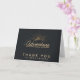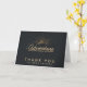 Carte de remerciement avec une illustration de couleur or sur un fond noir-gris. Conçue avec une illustration d'une montagne avec les rayons du soleil brillant vers l'extérieur depuis l'arrière. La typographie dit : Aventure explorer rêver découvrir. Message personnalisé à l'intérieur de la carte.