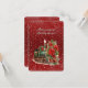 La façon la plus agréable d'envoyer des voeux de Noël à vos amis et votre famille. Un arrière - plan de flocon rouge avec un couvercle de neige tombante et un moteur de train vintage avec un avant de fleurs rouges. Cadre clair où la couleur peut être modifiée