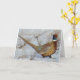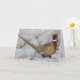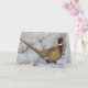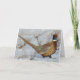 Carte de Faisan de Colchide. De loin le plus beau des oiseaux de terrain, le faisan de Colchide mâle brille presque sur ce fond enneigé. Les ors et les bruns châtains du corps contrastent magnifiquement avec le rouge, le blanc et le vert iridescent de la tête.