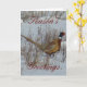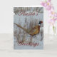 Carte « légendée » du Faisan de Colchide. Un beau faisan mâle dans la neige. Ces oiseaux multicolores sont importés et ont encore du mal en hiver, surtout lorsque la neige épaisse rend difficile la recherche de nourriture.