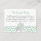 Ce design baby shower présente une mignonne maman et un petit éléphant sur un arrière - plan de chevron vert menthe et gris. Insérez une carte dans chaque invitation demandant à chaque client d'apporter un livre signé au lieu d'une carte à la douche. C'est une façon amusante et sincère de remplir rapidement la bibliothèque de bébé avec des souvenirs mémorables! Des produits de coordination seront disponibles dans notre boutique. Contactez-nous si vous avez besoin que cette conception s'applique à un produit spécifique pour créer votre propre article de correspondance unique! Merci tellement pour voir un DoodleLulu par 2 june conception de bogues!