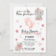 Bany douche carte d'invitation - Bébé éléphant, rose et le motif étoiles