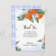 La carte Baby shower en Merci plat illustre une délicieuse branche de mandarine avec des fleurs en aquarelle.