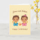 Carte Baby Twins Garçon Girl Premier anniversaire Jaune