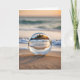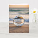 Boule de lentille en verre sur une plage avec réflexion de scène côtière. Le texte intérieur est modifiable.