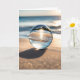 Boule de lentille en verre sur une plage avec réflexion de scène côtière. Le texte intérieur est modifiable.