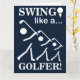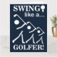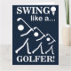 Carte de vœux de golf "Swing Like A Golfer" conçue par Nisha Prabhu. Envoyez une carte de vœux sur le thème du golf qui est sûre de marquer un trou-en-un avec notre carte de vœux de golf "Swing Like A Golfer" ! Parfaite pour toutes les occasions, cette carte est un excellent moyen de montrer votre amour pour le jeu et de célébrer avec d'autres passionnés de golf. Avec un design élégant qui capture l'esprit du golf, cette carte est sûre de faire impression. Que ce soit pour un anniversaire, un remerciement ou simplement pour dire bonjour, cette carte de vœux est un choix parfait pour tout golfeur dans votre vie. Balancez-vous dans des connexions sincères avec notre carte de vœux de golf "Swing Like A Golfer" et faites d'une journée quelqu'un un oiseau !