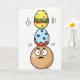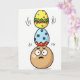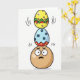 This design shows three egg-shaped figures stacked in a tall, slightly teetering tower on a white background, with a couple of wobble lines hinting at motion 🐇. At the bottom sits a light brown, round character with wide eyes and a furrowed look, as if nervously trying to keep everyone steady for a friend. Above it is a pale blue egg decorated with dark blue polka dots and a jagged red band near the lower edge dotted with small yellow spots, leaning just enough to feel like it’s relying on the base. On top is a bright yellow egg with soft pink polka dots and a green zigzag stripe that has a thin red line running through its center, like a cheerful crown to the stack 🌷. Small highlight marks on each shape suggest a glossy finish, making the colors look slick and candy-like. There is no visible message text on the front, leaving the open white space to frame the trio like a simple stage. Curved motion marks sit to the left and right of the upper two eggs, emphasizing the gentle wobble of the stack.