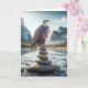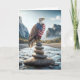 Un aigle royal, perché sur un cairn en pierre, dans une rivière qui coule avec un drapeau américain. Le texte peut être modifié.