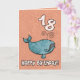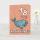 Baleine de joyeux anniversaire - 18 années de baleine de bosse mignonne sur une carte de voeux spécifique à l'âge d'anniversaire. Texte intérieur : "Espoir vous avez une baleine d'un moment !"