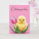 Jolie poussette dans une tulipe rose pour l'anniversaire. Le texte est modifiable.