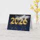 Ballons en mylar or, rubans et nuages sur dégradé noir et bleu arrière - plan pour 2026 Nouvel An