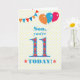 Carte d'anniversaire colorée pour un fils de 11 ans, Le grand numéro 11 est rempli d'un motif orange, rouge et bleu, surligné de bleu vif. Il y a des ballons et du bunting en haut, dans des couleurs assorties et l'accueil à la couverture est : "Mon fils, tu as 11 ans aujourd'hui !" en lettres rouge et bleu vif, sur un arrière - plan à pois jaune et blanc très pâle, avec des étoiles rouges et oranges de chaque côté du mot "AUJOURD'HUI !". Le message intérieur peut être facilement customisé ou supprimé si vous le souhaitez.
