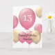 Carte personnalisée rose et or 13ème anniversaire pour elle, qui comporte des ballons roses et or sur le devant que vous pouvez facilement personnaliser avec son nom. Une carte d'anniversaire unique pour sa treizième.